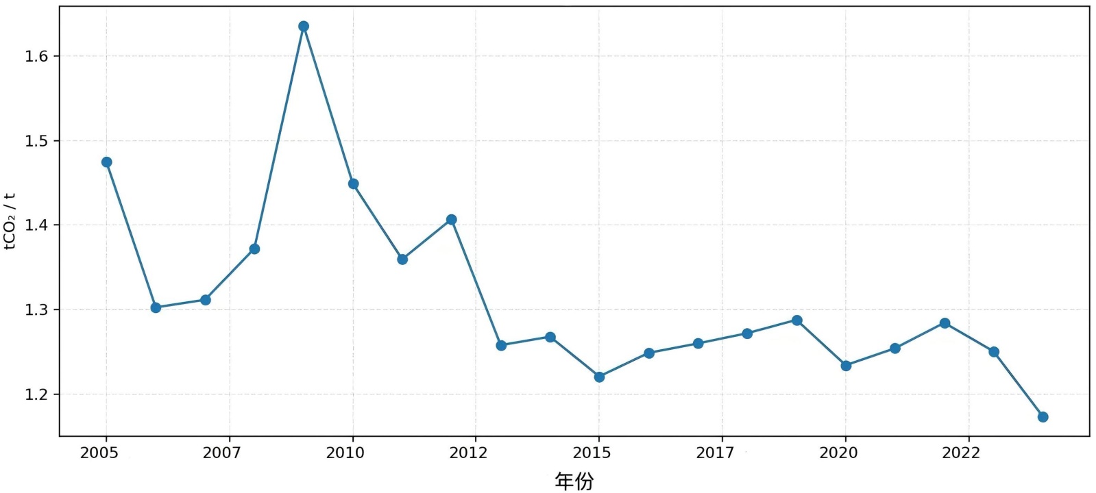 Figure 3. Trend chart of export-weighted average carbon intensity