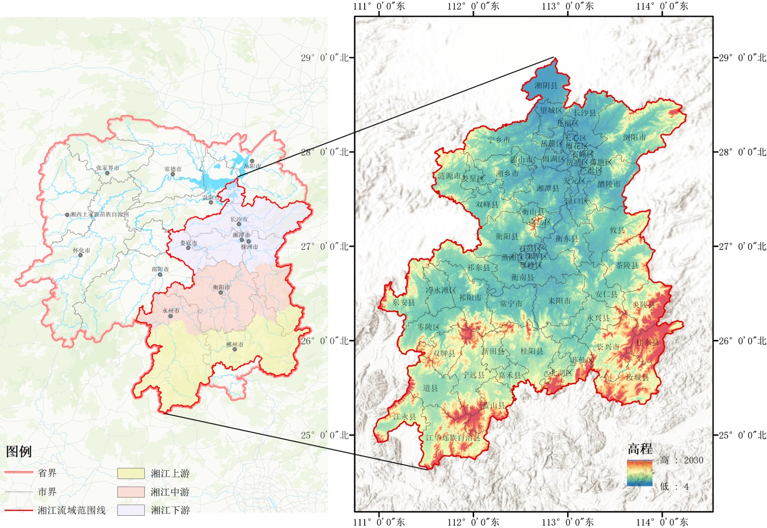 图1. 湖南省湘江流域范围