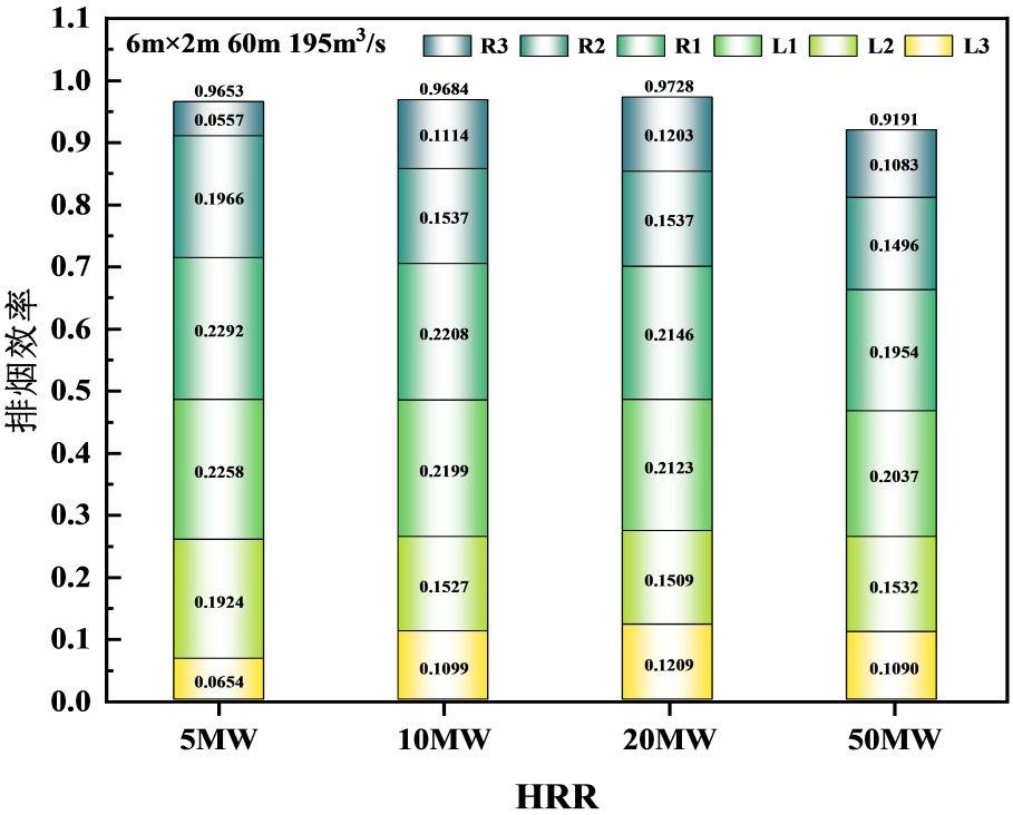 Figure 5. Smoke exhaust efficiency under different heat release rates (HRR)