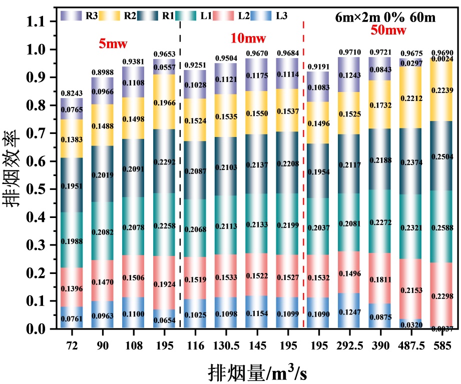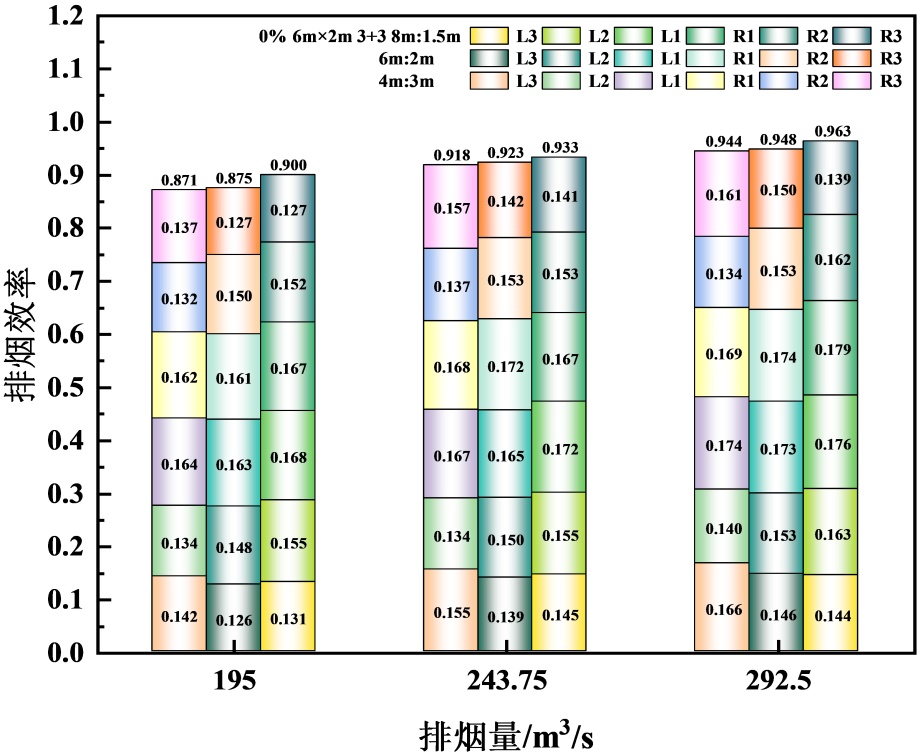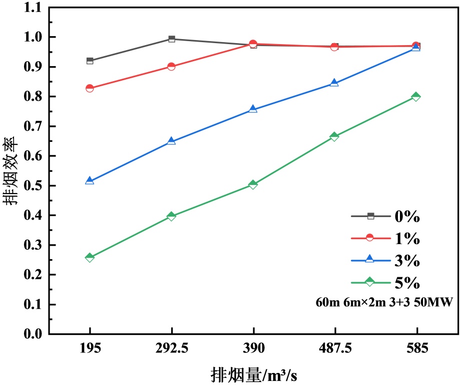 Figure 6. Smoke exhaust efficiency under different smoke exhaust rates