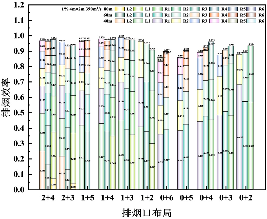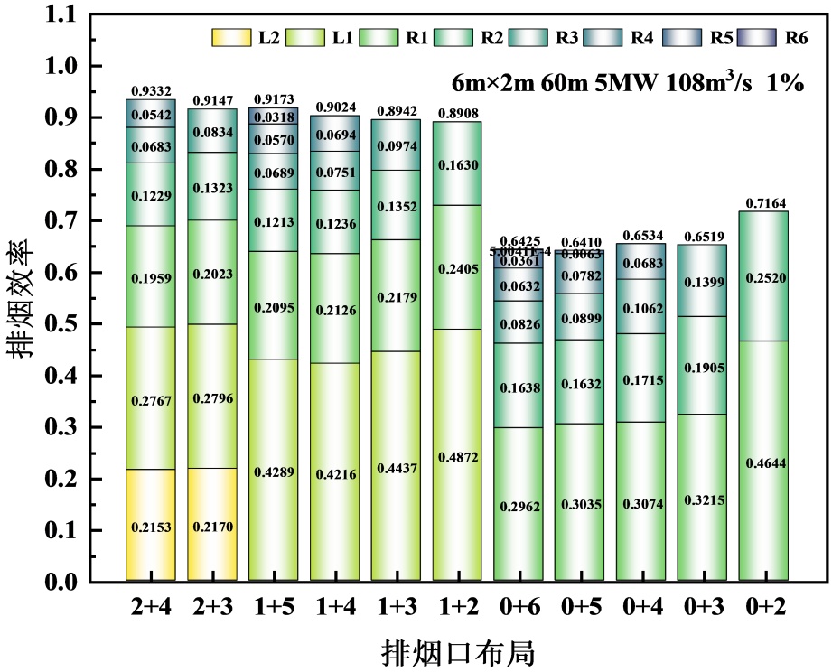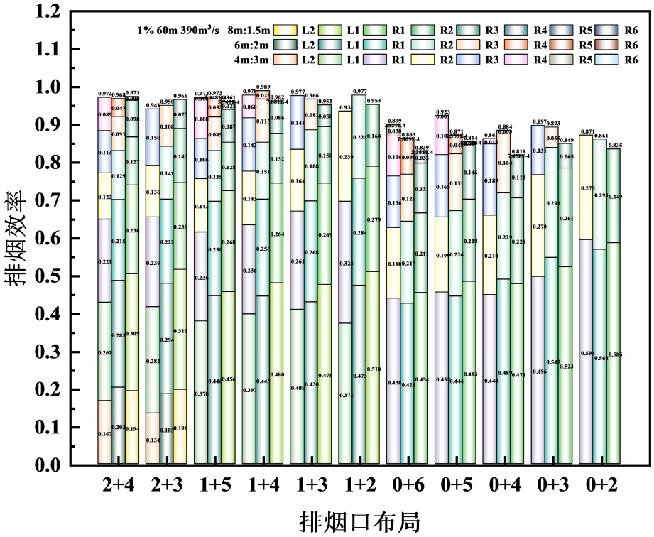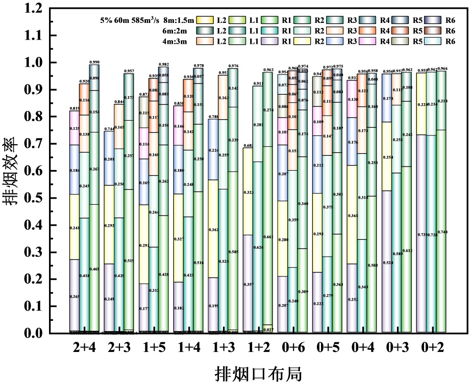 Figure 9. Smoke exhaust efficiency under different arrangement of smoke exhaust vents