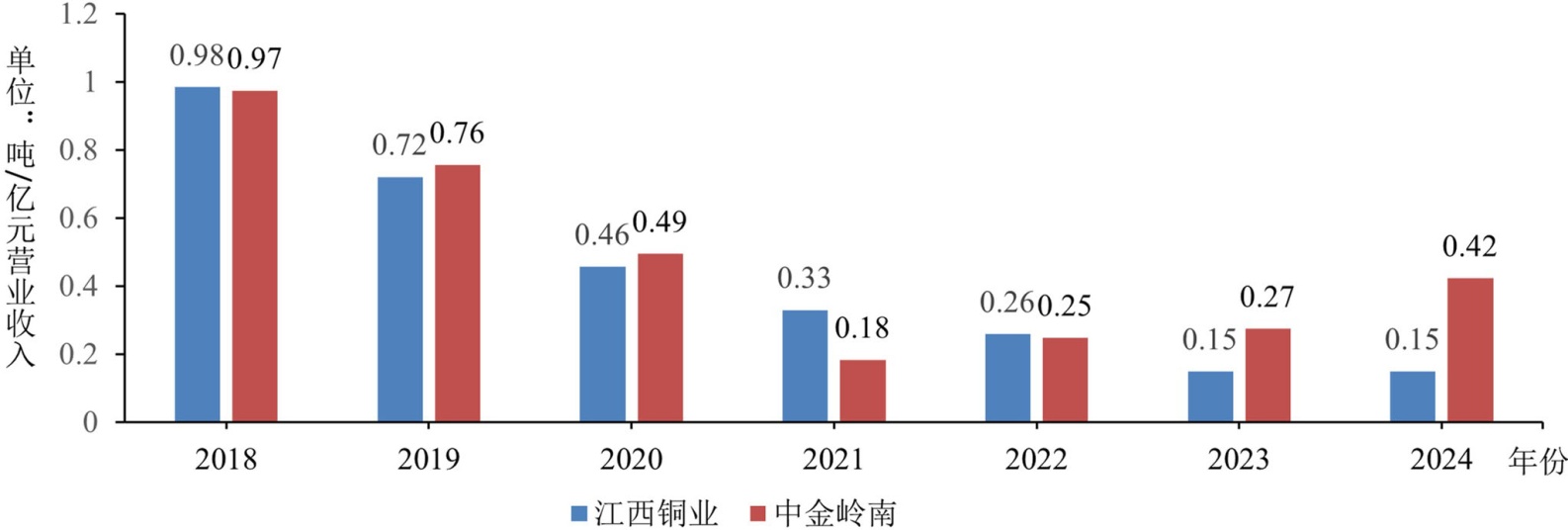 图2. 2018~2024年江西铜业能源消耗密度情况
