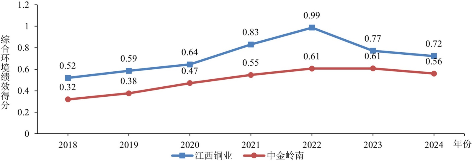 图5. 2018~2024年江西铜业综合环境绩效得分