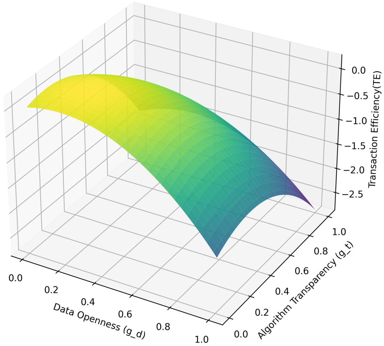 图1. 数据开放程度、算法治理强度与交易效率(TE)的三维曲面图