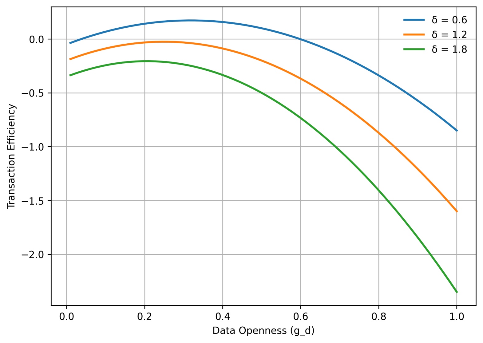图2. 不同数据共享水平λ下的治理强度与交易效率关系(倒U型)