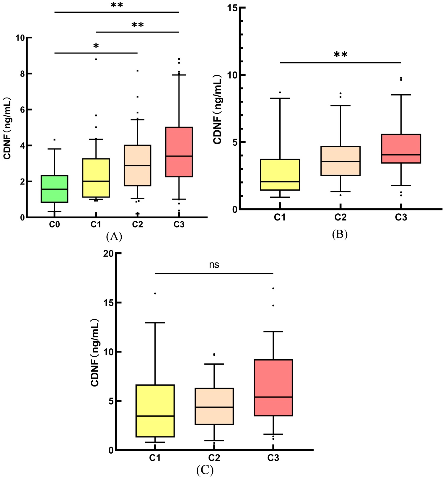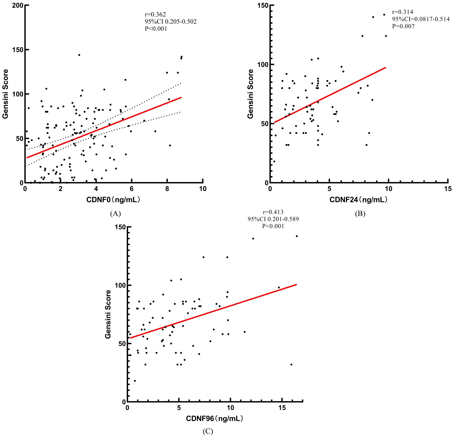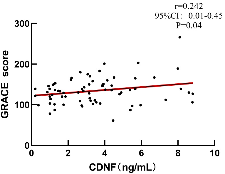 CDNF水平可能是评价急性冠脉综合征冠脉受损严重程度的相关因素。