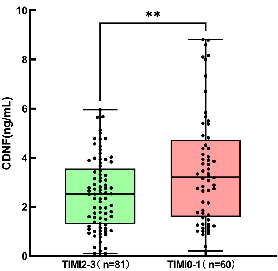 CDNF可能有保护受损心肌的功能,可能作为预测AMI患者预后的评价因素。