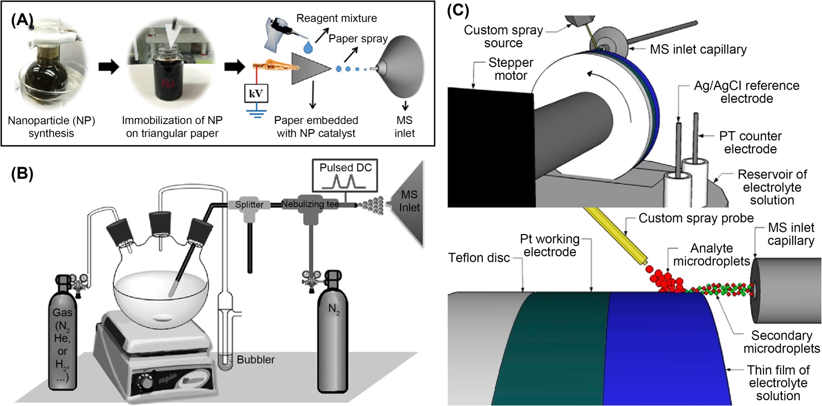 Banerjee, S., Basheer, C. and Zare, R.N. (2016) A Study of Heterogeneous Catalysis by Nanoparticle‐Embedded Paper‐spray Ionization Mass Spectrometry. Angewandte Chemie International Edition, 55, 12807-12811. [Google Scholar] [CrossRef] [PubMed]