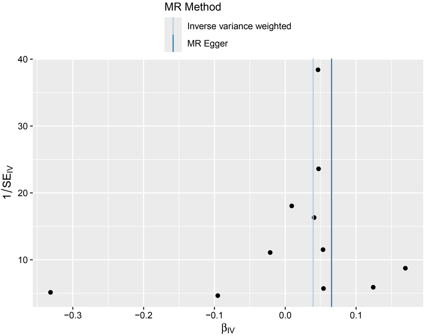 图3. 孟德尔随机化分析漏斗图(强直性脊柱炎→肾恶性肿瘤(不含肾盂))