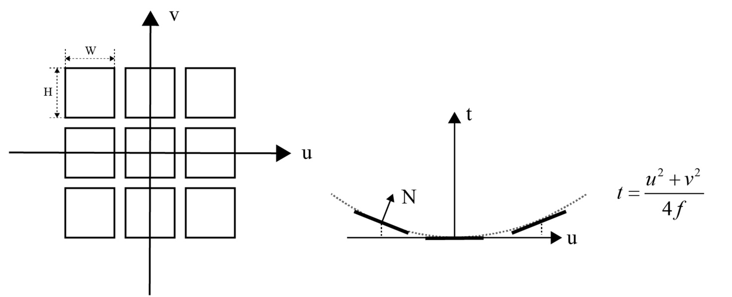 图4. 矩形抛物聚焦型定日镜示意图
