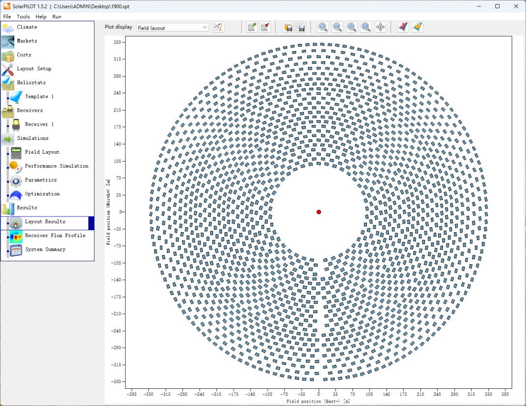 Figure 8. A heliostat field with 1900 heliostats generated in SolarPILOT