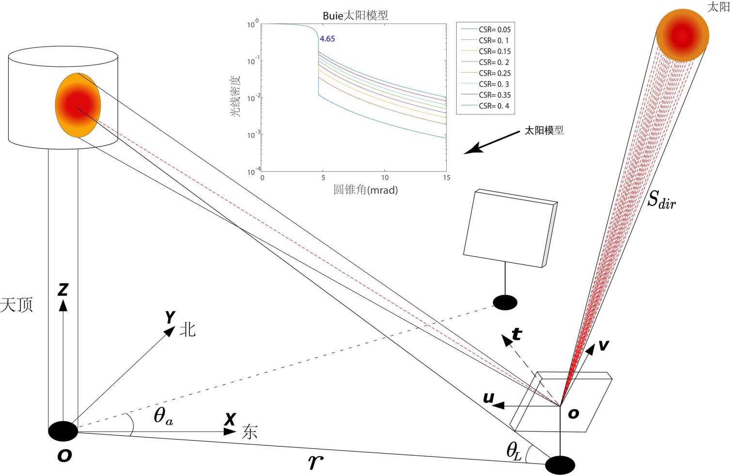 4) 假设入射太阳光线遵循Buie光锥模型[16]。