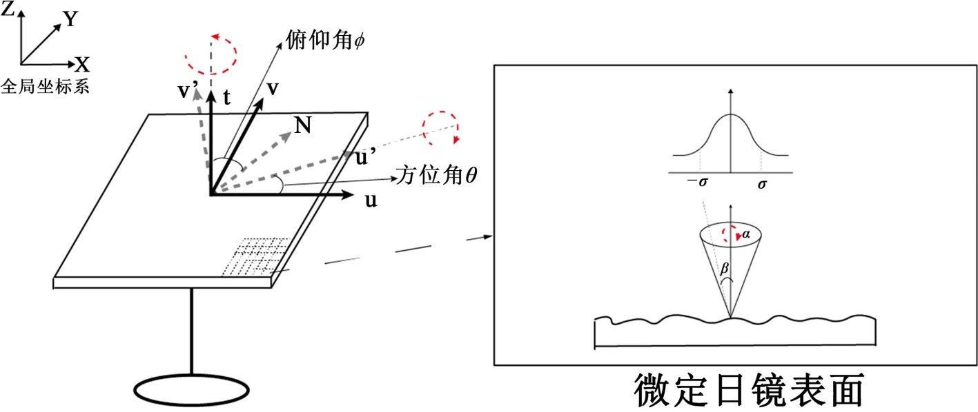 图2. 定日镜旋转和微表面法向偏移示意图