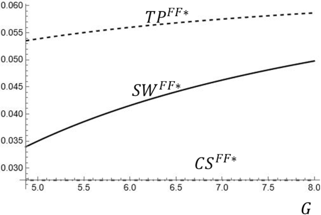 Figure 8. TP, CS and SW under strategy (T, F)