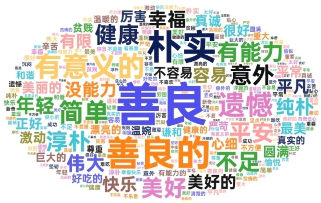 在数字媒介环境,评论互动构建了超越物理时空的虚拟互动仪式。受众通过文字、表情、点赞与回复等数字化实践形成符号化身体,在共同的评论场域中实现虚拟共在,聚焦共同关注点与共享情感体验。为全面分析视频所触发的情感传播效应,本研究使用八爪鱼采集器在视频评论区抓取300余条评论文本,数据清洗后对该视频下的200条评论进行了编码分析与文本挖掘。在对评论内容进行整体词频分析后,我们得到了高频词云图(详见图1)。词云显示“善良”“有意义的”“伟大”“美好”等词汇构成了评论的核心语义场,直观呈现了受众反馈高度集中于积极、向善的情感基调。这为本节深入探究具体的情感反馈类型与共鸣逻辑提供了宏观的情绪语境与意义指向。