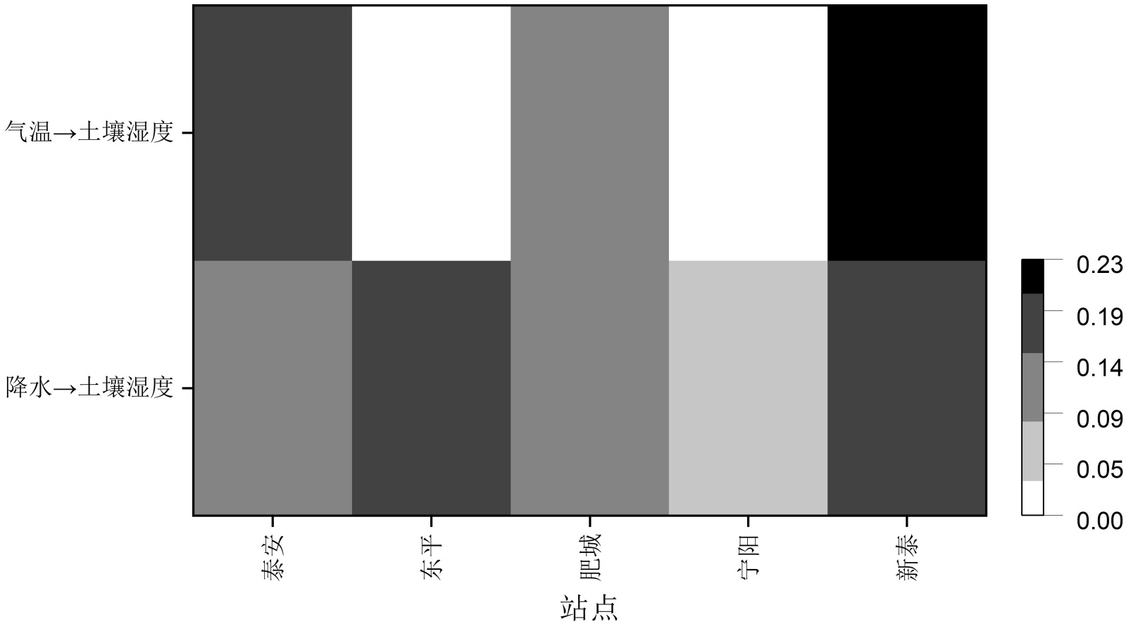 图6. 气温和降水对土壤湿度的非线性因果影响强度