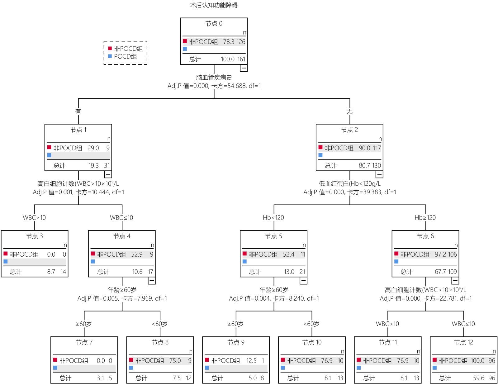 李梦琪, 赵志青, 沈洪兴, 等. 老年胃肠道肿瘤患者术后认知功能障碍风险预测模型的构建——基于决策树与Logistic回归的联合应用[J]. 中华老年多器官疾病杂志, 2024, 23(5): 358-363.