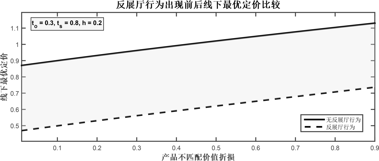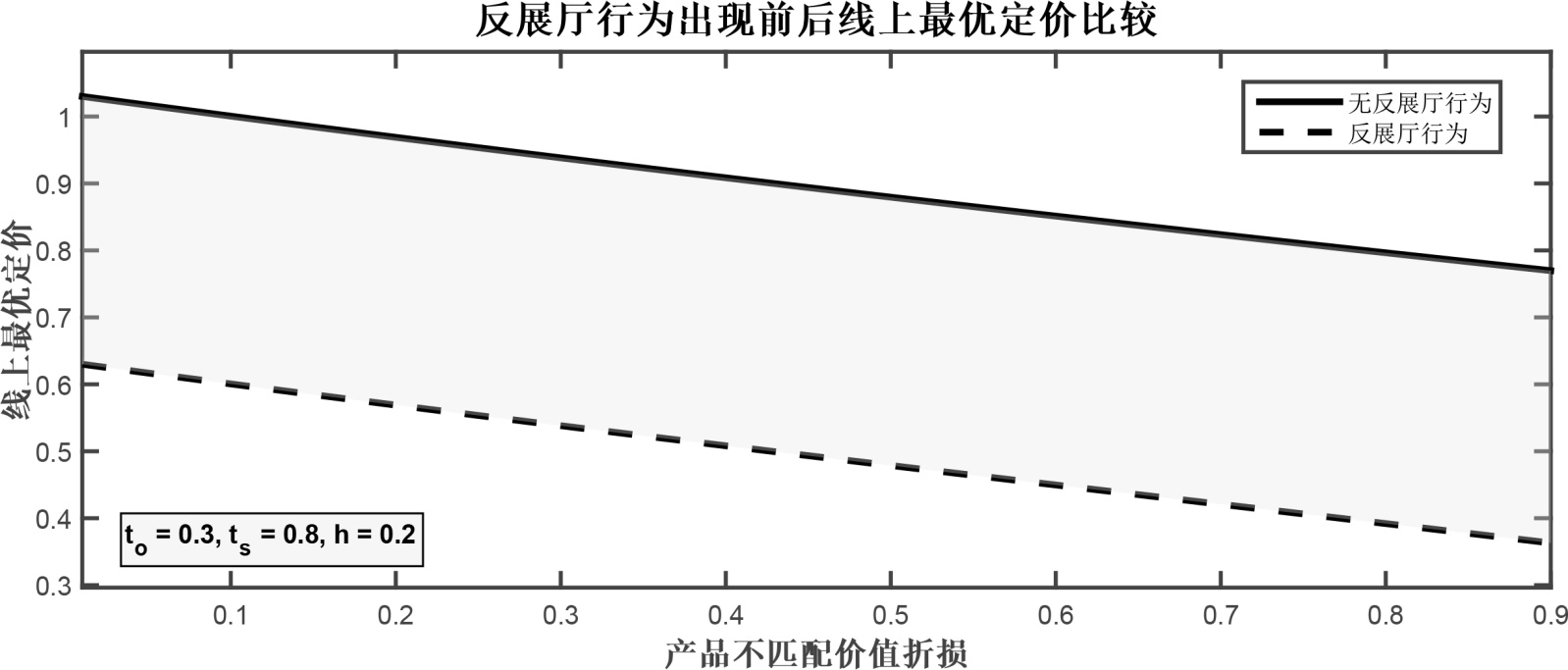 (1) 图2展示了反展厅行为出现前后线上最优定价随产品不匹配价值折损的变化,在固定参数