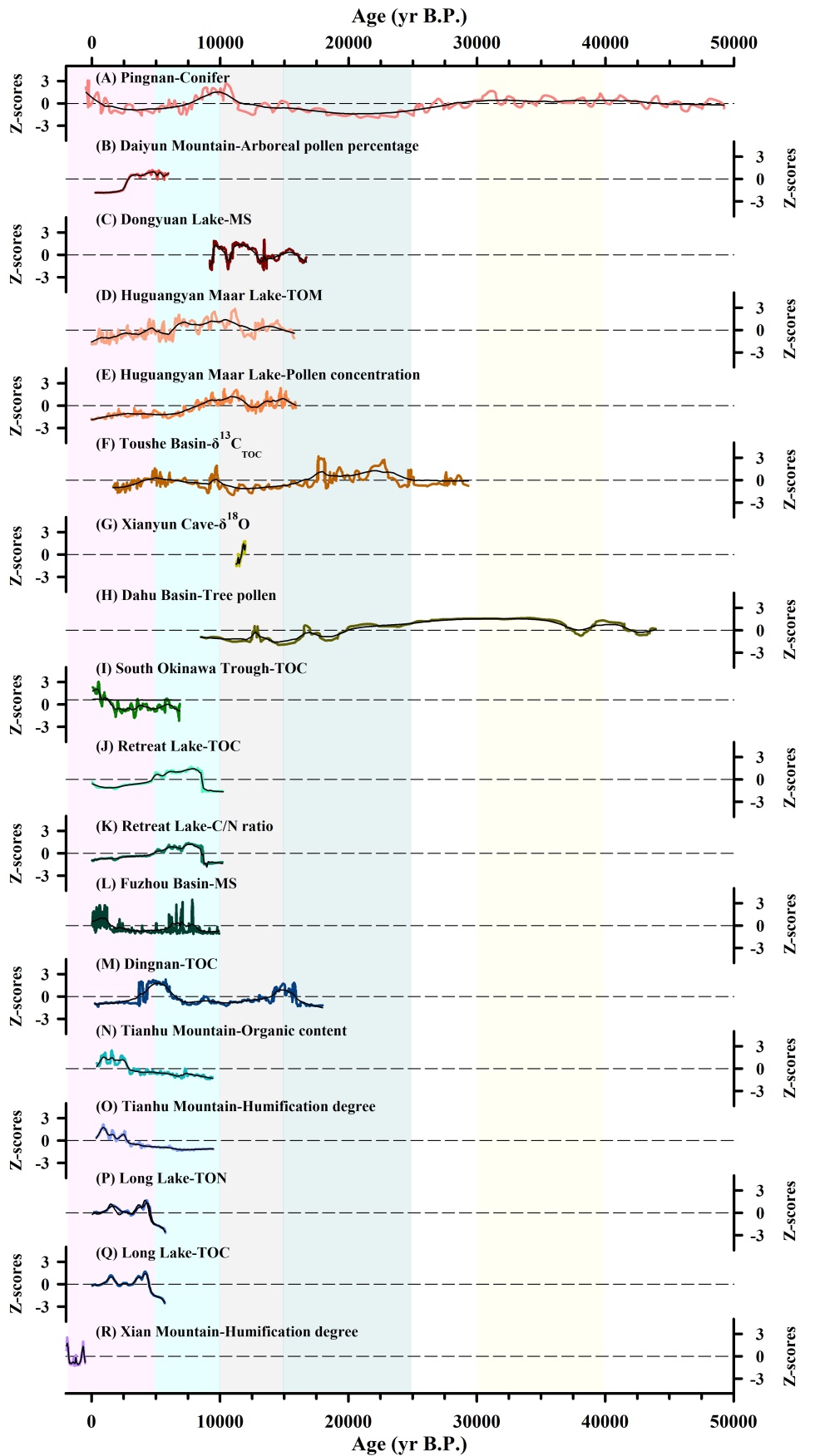 Zhou, W., Xie, S., Meyers, P.A. and Zheng, Y. (2005) Reconstruction of Late Glacial and Holocene Climate Evolution in Southern China from Geolipids and Pollen in the Dingnan Peat Sequence. Organic Geochemistry, 36, 1272-1284. [Google Scholar] [CrossRef]