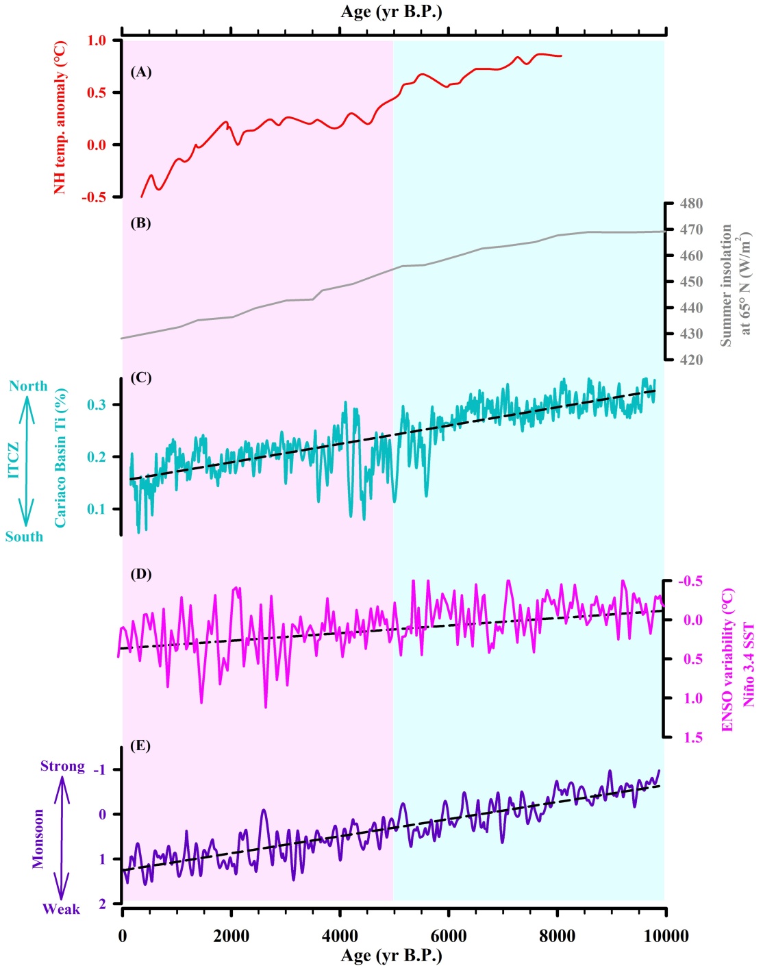 Haug, G.H., Hughen, K.A., Sigman, D.M., Peterson, L.C. and Röhl, U. (2001) Southward Migration of the Intertropical Convergence Zone through the Holocene. Science, 293, 1304-1308. [Google Scholar] [CrossRef] [PubMed]