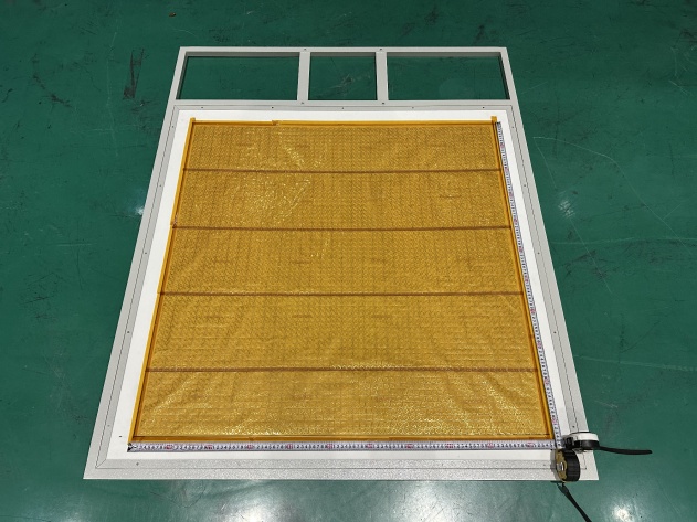 。为实现超轻薄的薄膜剖面,聚酰亚胺层的厚度设定为20 μm。为兼顾耐用性与稳定的电气性能,顶层表面镀有2 μm厚的镍金(Ni-Au)层,底层则采用覆铜聚酰亚胺层作为接地板,同时保持了结构的机械柔韧性。每个单元呈正方形,周期