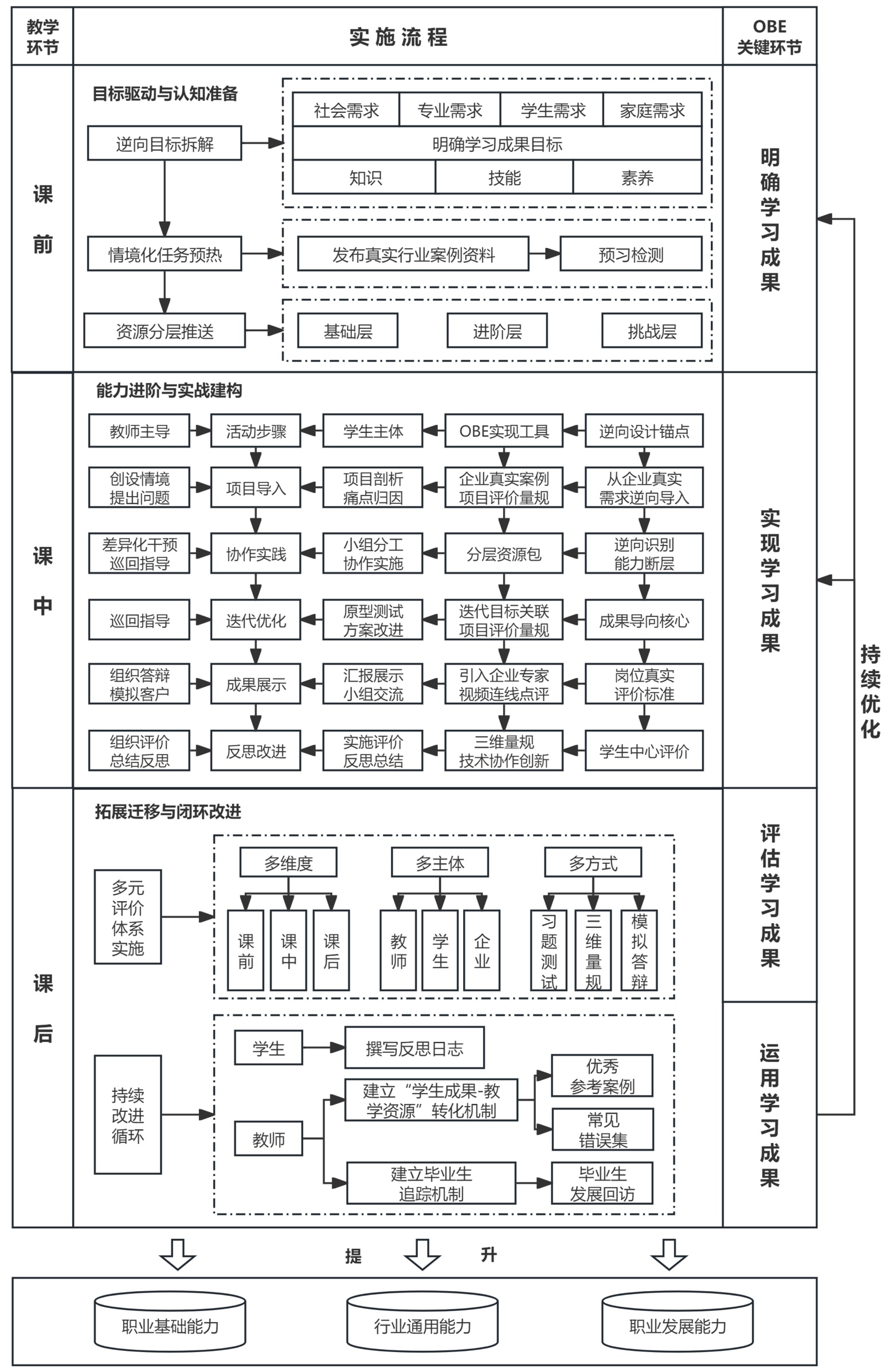 3. 模式构建:OBE理念下项目式教学的三阶优化框架