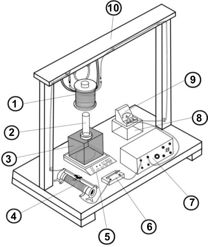 木制框架和隔磁底座:木制框架主要用于悬挂电磁铁及排列实验控制电路。若直接将软铁棒置于电子秤上,当电磁铁吸引软铁棒后会对电子秤的示数造成干扰。因此,可用木板等非磁性材料制作隔磁底座,将软铁棒和隔磁底座一起置于电子秤上,从而防止软铁棒被磁化后对电子秤的示数造成干扰。