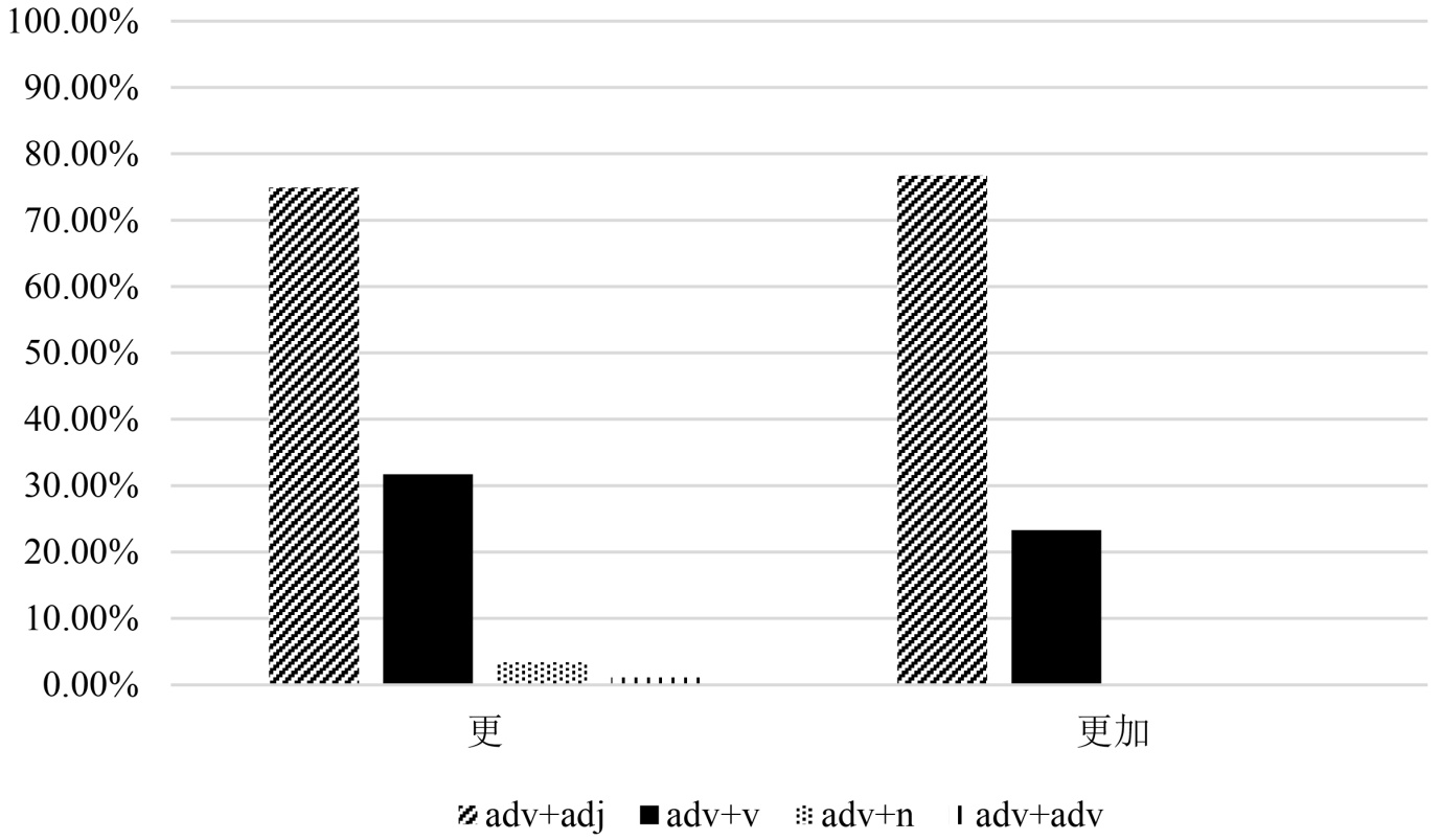 本研究的研究对象为副词“更”、“更加”。本文使用的语料库为北京大学现代汉语语料库(简称:CCL)。该语料库数据规模大、语料均衡,反映出现代汉语书面语的实际使用情况,为我们客观考察书面语中的词汇分布和语法特征等方面提供了丰富语料。