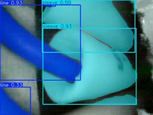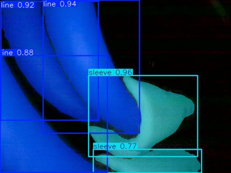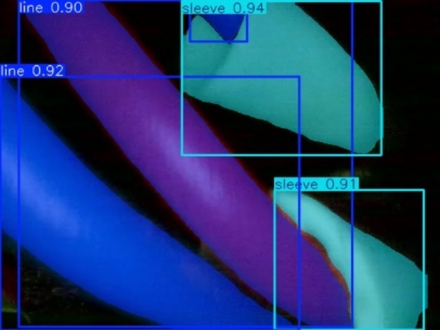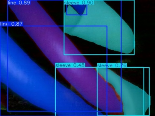 如图8所示,原始分割模型在复杂背景下对线缆与套管目标的分割结果存在明显不足,主要表现为分割断裂、单一目标被预测为多个实例,以及相邻套管之间的误融合等问题。这主要是由于线缆类目标具有细长结构特性,局部外观相似度较高,仅依赖局部特征容易导致上下文理解不足。引入SimSPPF模块后,模型能够有效融合不同尺度的空间上下文信息,显著增强对目标整体结构的建模能力,从而减少分割断裂和实例混淆现象。对比结果表明,改进后的模型在保持计算效率的同时,显著提升了实例分割结果的完整性与稳定性。