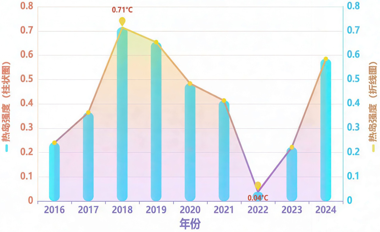图2. 2016年至2024年的沈阳市热岛强度变化趋势
