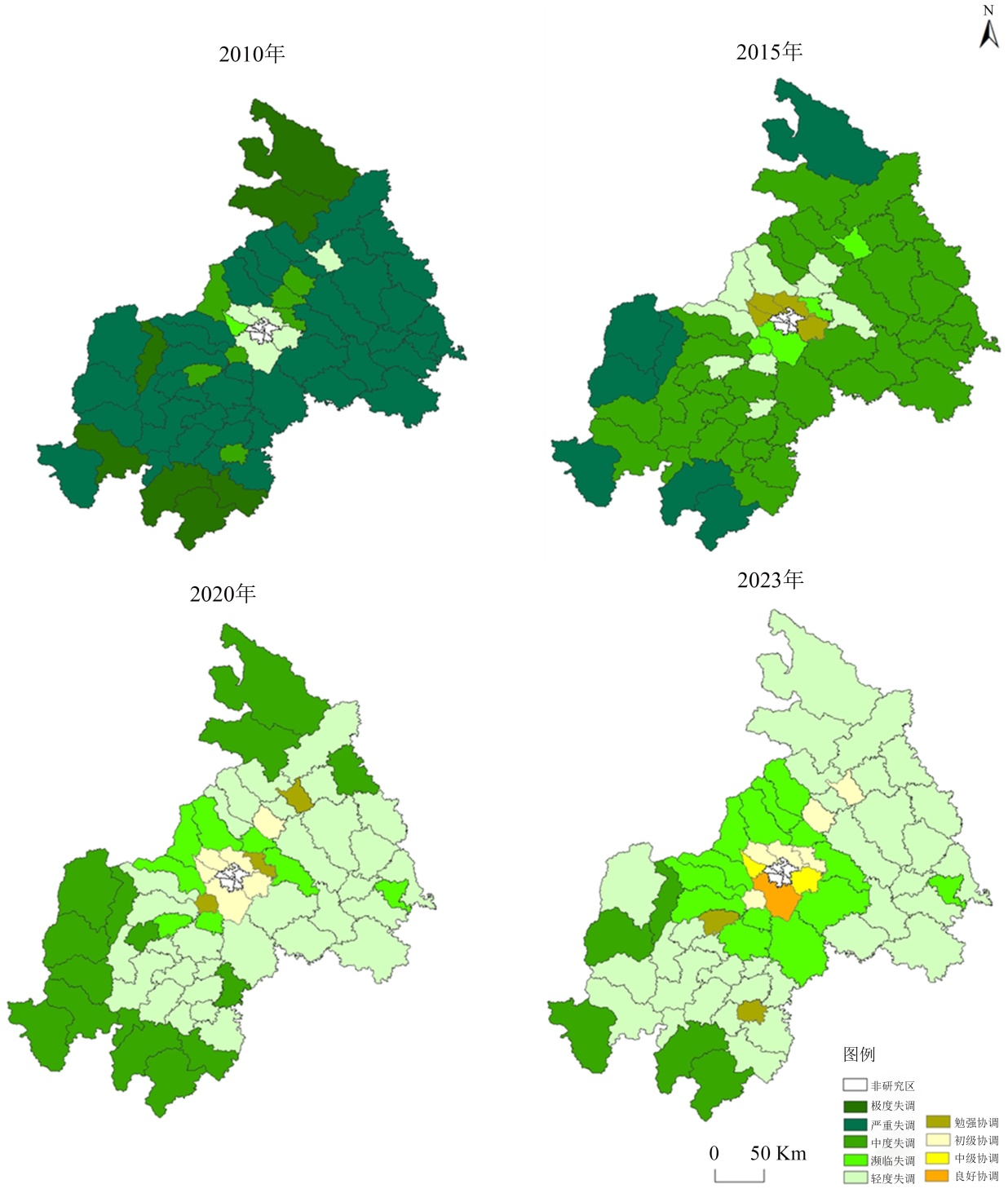 本研究运用改进的耦合协调模型和障碍度模型测算2010~2023年成都平原经济区63县“人–地–业”协同发展水平及其主要障碍因素,研究结果如下。
