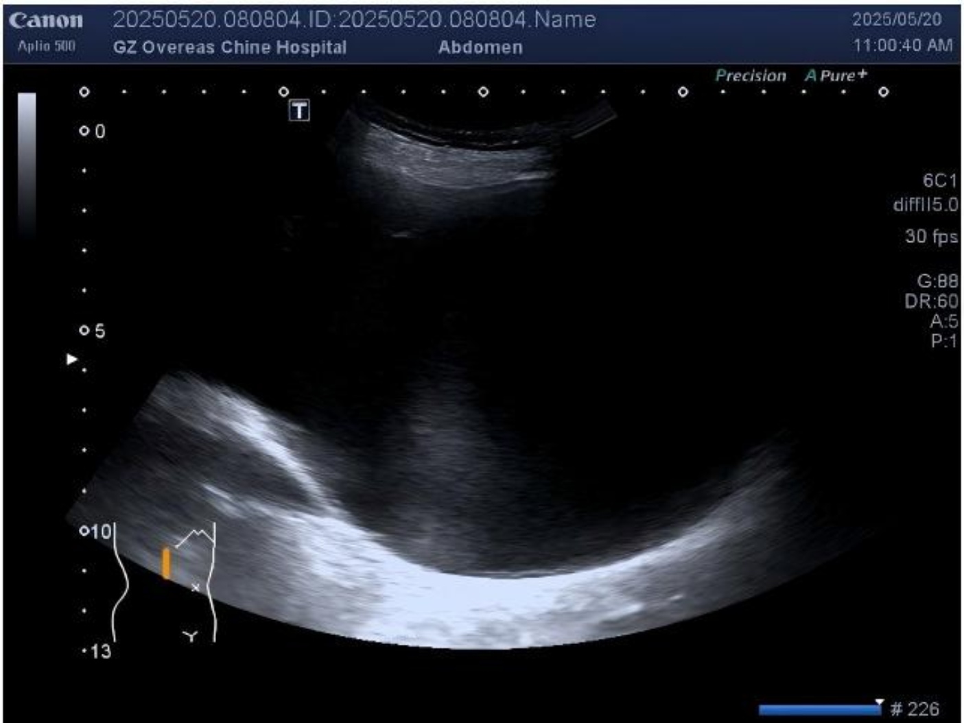 泌尿系超声(2025-05-20):左肾轻度积水(集合系统分离22 mm);右肾重度积水(集合系统分离98 mm),皮质变薄(厚约2.3 mm),结构不清。膀胱未见异常(见图2)。