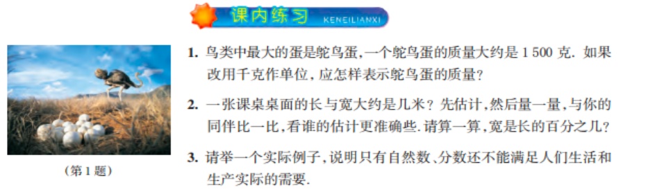 新教科书对于装饰性的插图使用有明显下降,例如旧版教科书第七页有关《从自然数到有理数》的单位换算题,见图1,将左边无太大关联性的装饰性插图删除。诸如此类的装饰性插图得到了有效减少。