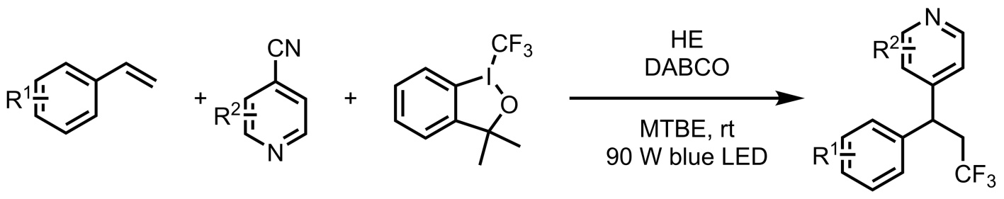 Chen, D., Xu, L., Long, T., Zhu, S., Yang, J. and Chu, L. (2018) Metal-Free, Intermolecular Carbopyridylation of Alkenes via Visible-Light-Induced Reductive Radical Coupling. Chemical Science, 9, 9012-9017. [Google Scholar] [CrossRef] [PubMed]