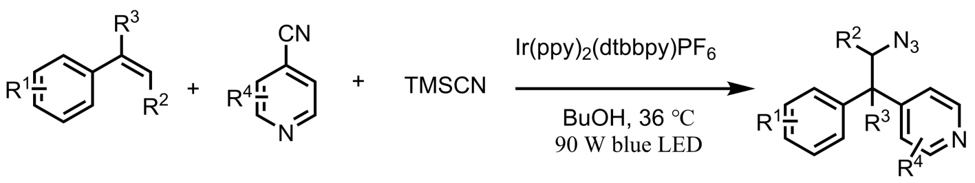 Chen, J., Zhu, S., Qin, J. and Chu, L. (2019) Intermolecular, Redox-Neutral Azidoarylation of Alkenesviaphotoredox Catalysis. Chemical Communications, 55, 2336-2339. [Google Scholar] [CrossRef] [PubMed]