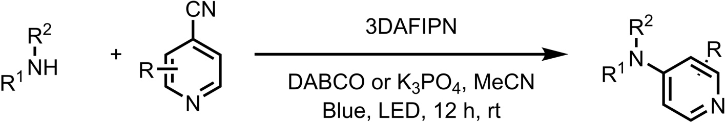 Lipp, B., Lipp, A., Detert, H. and Opatz, T. (2017) Light-Induced Alkylation of (Hetero)Aromatic Nitriles in a Transition-Metal-Free C-C-Bond Metathesis. Organic Letters, 19, 2054-2057. [Google Scholar] [CrossRef] [PubMed]