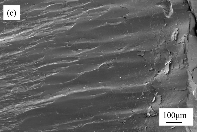 图8. 失效行星轮断口微观形貌(a) 源区;(b) 扩展区;(c) 瞬断区