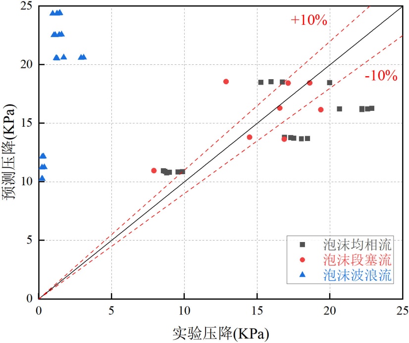 ,将均相流型及段塞流型下的压降预测平均值从22.84%降低至9.07%,有效提高了泡沫均相流型和泡沫段塞流型的预测精度,为该类泡沫流体在实际工程中的压降预测及参数优化提供理论支撑与数据参考。