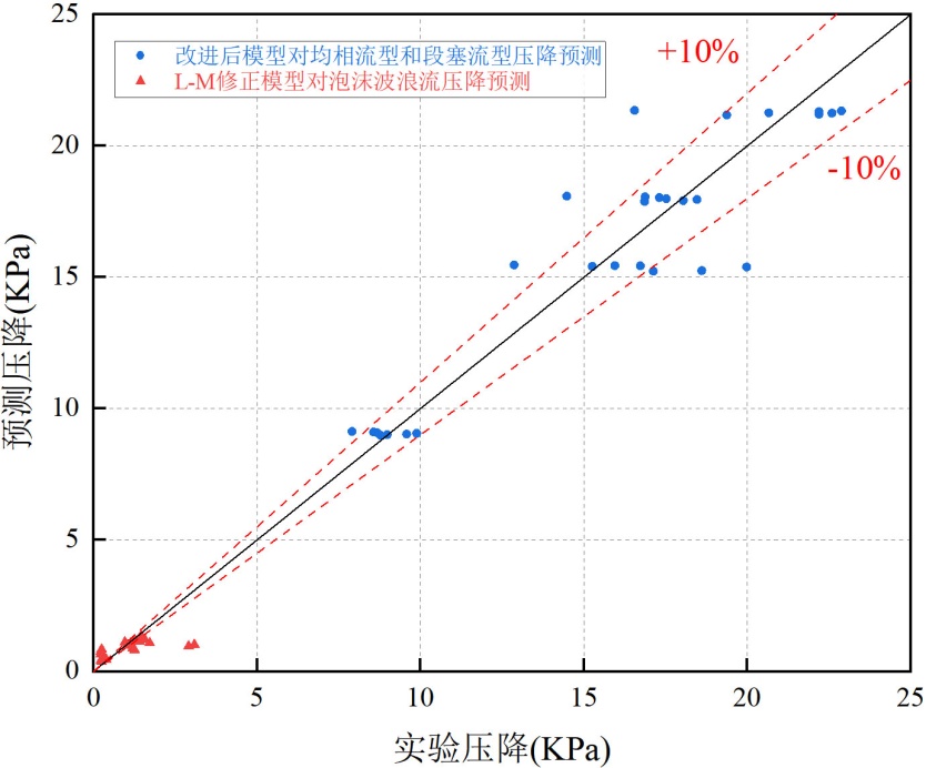 ,对模型进行修正。改进后模型能有效提高精度,能较好地预测泡沫均相流型和泡沫段塞流型下的压降,平均误差降低至9.07%,满足工程应用需求。