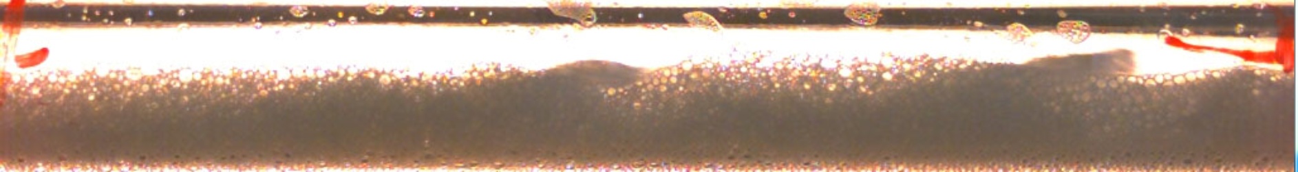 利用自制的泡沫水平管流装置,进行空气水基CAB-35泡沫管流实验。配置好特定浓度的起泡剂溶液,通过蠕动泵将起泡剂送入泡沫发生器中,并与气相混合,形成泡沫流体,通过高速摄像机拍摄泡沫流体的特征,通过压力传感器获取管路压力,获得管路压降。通过改变气相流量(20~80 L/min)和液相流量(400~1000 mL/min)获取不同工况条件下的泡沫水平管流特性。