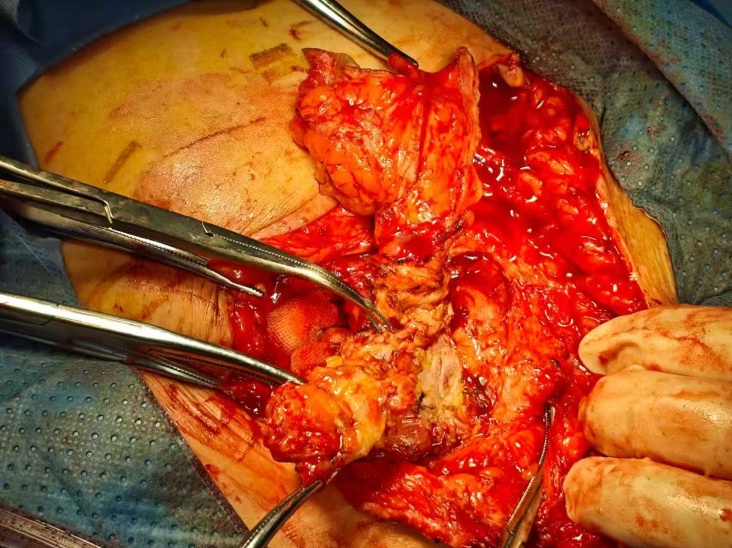 IPOM术式是目前切口疝修复的常用术式,具有创伤小、恢复快、补片覆盖范围广等优势,适用于腹壁缺损较大、无明显感染的病例。该患者首次手术时无感染征象,选择IPOM术式符合指南推荐[1],但术后出现感染复发,提示对于多次手术、腹腔粘连严重的患者,IPOM术式可能因补片与周围组织反应加重,增加感染风险。此外,补片选择方面,PFM补片虽为防粘类型,但不可吸收特性使其在感染后难以清除,成为持续感染灶,这也为后续治疗带来困难。