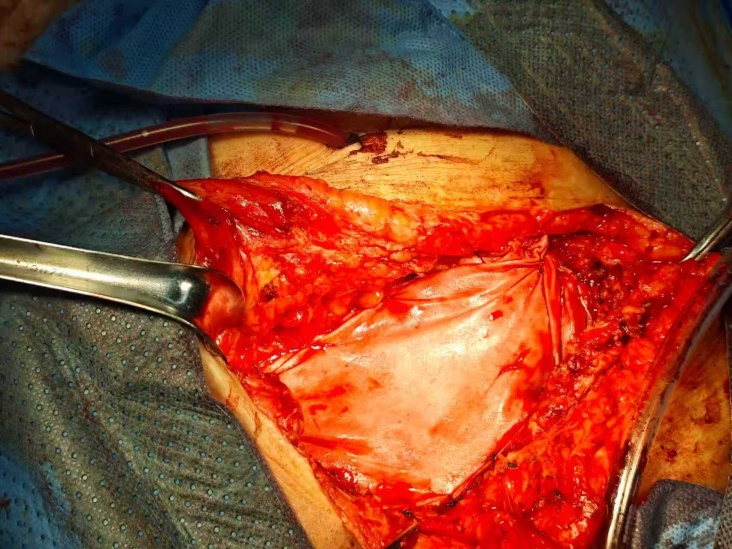 图2. 生物补片覆盖缺损区域