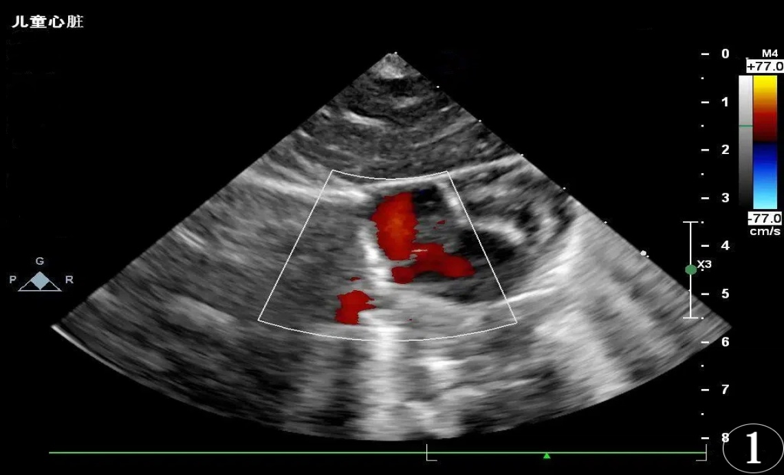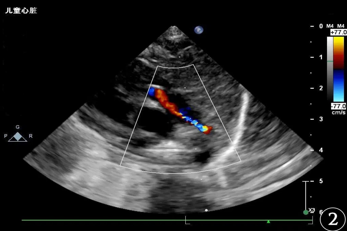 图7. 示患儿心脏彩超检查:主动脉、肺动脉未见异常。彩色多普勒血流成像(CDFI)未见血液返流