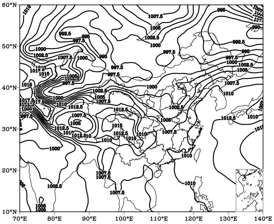 (1) 由美国国家环境预测中心(NCEP)提供的再分析数据集(NCEP FNL Operational Global Analysis data,下载地址:https://rda.ucar.edu/datasets/d083002/dataaccess/#),该数据时间分辨率为6小时,空间分辨率为1˚ × 1˚。