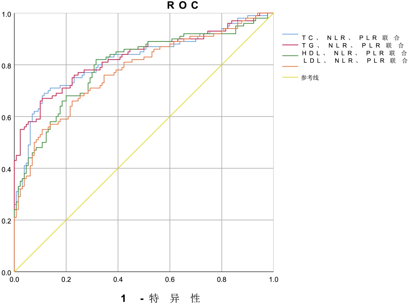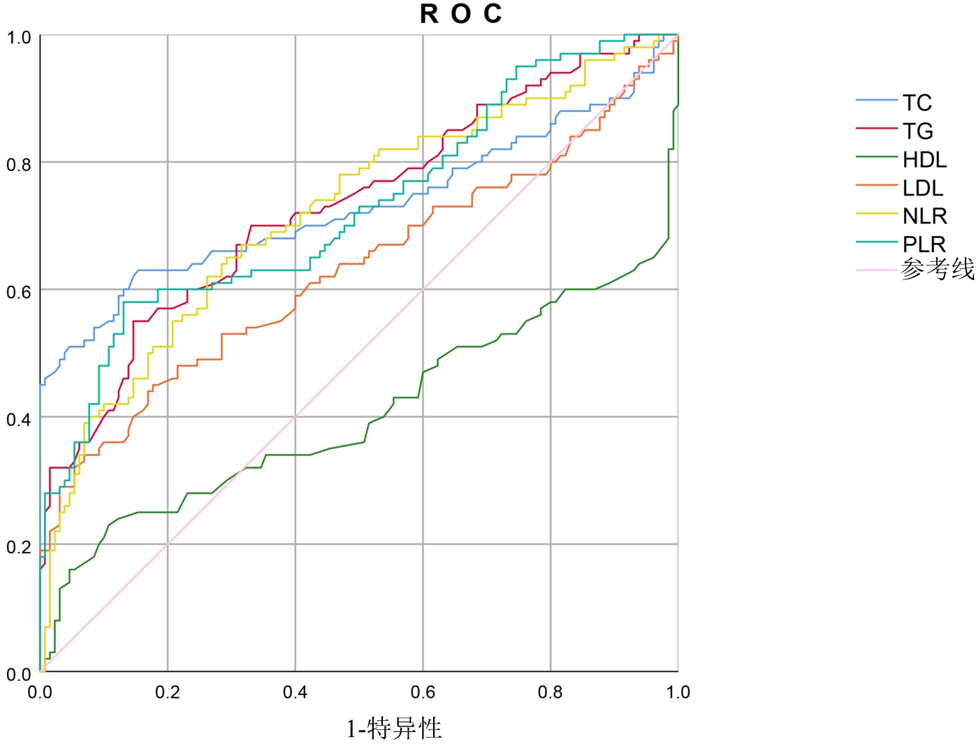 3.4. 血清血脂水平及NLR、PLR的受试者工作曲线特征