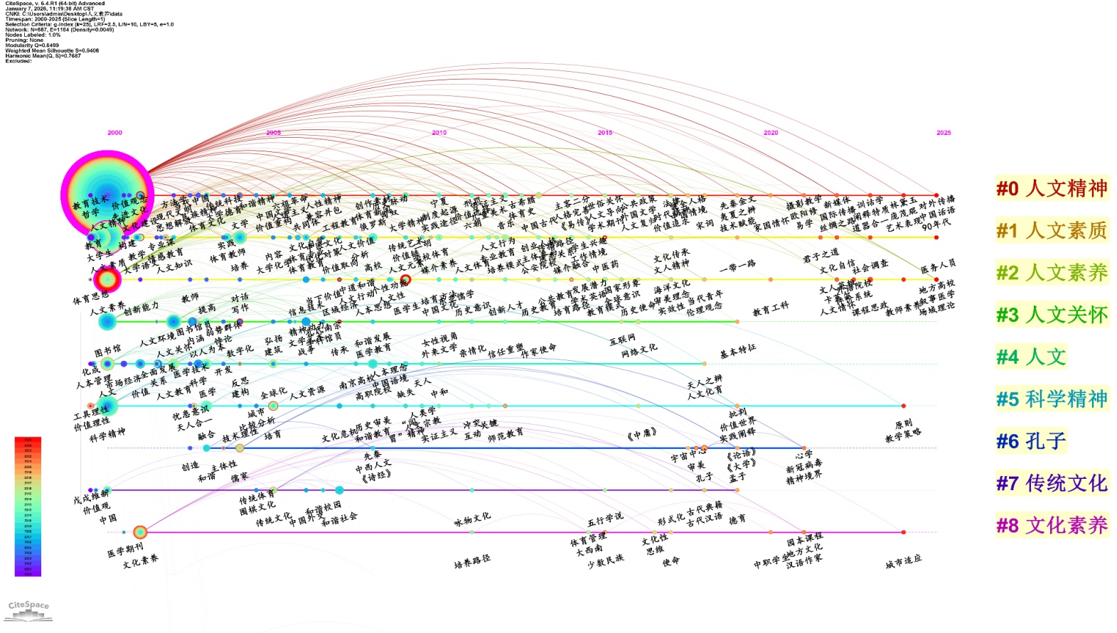 图2. 国内人文素养研究的关键词聚类图谱