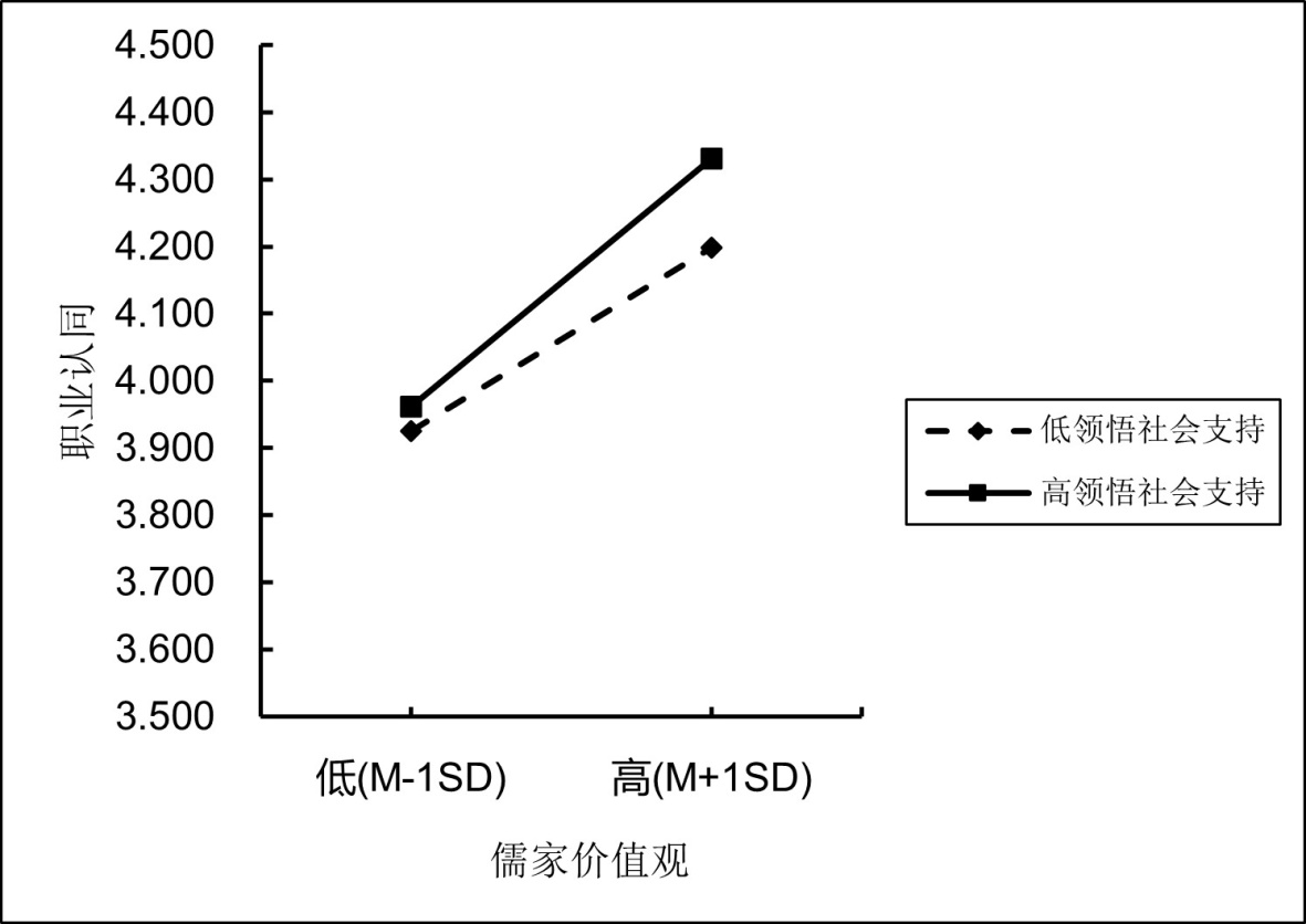 H3:领悟社会支持可以正向调节儒家价值观对辅导员职业认同的影响。