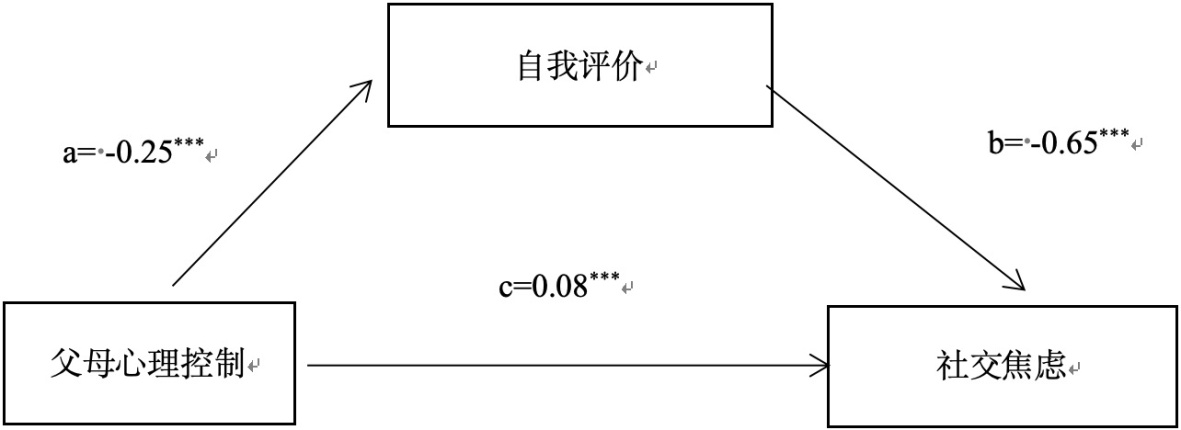 H2:自我评价在父母心理控制与大学生社交焦虑之间起显著中介作用;