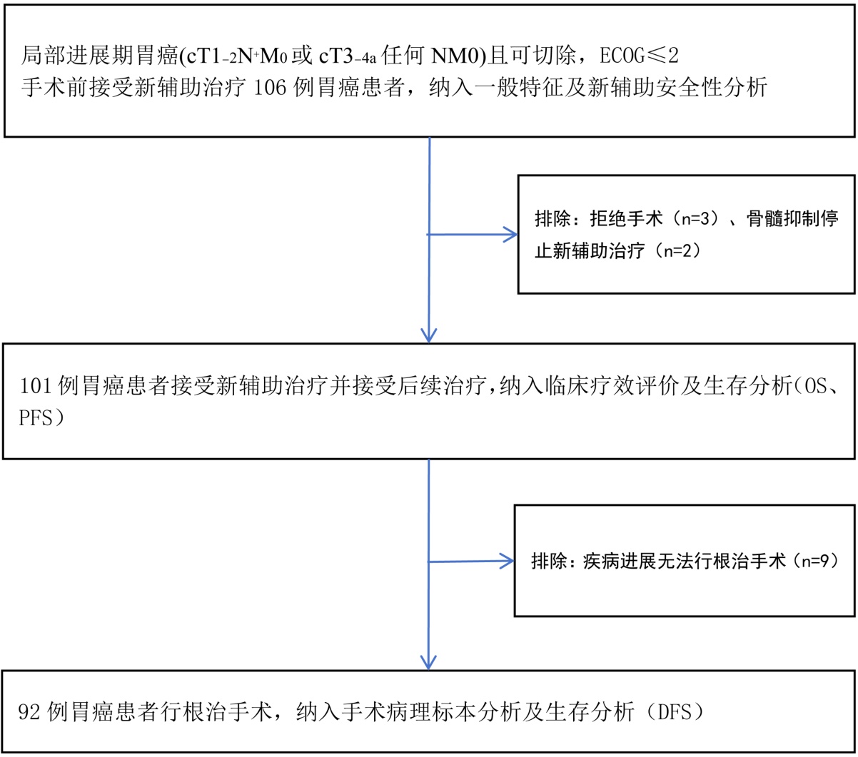 然而,新辅助化疗后的总体疗效仍不尽如人意,病理完全缓解(pCR)率仅为2%~16%,5年生存率为36%~45% [6]。因此,对于局部晚期胃癌患者,迫切需要在新的辅助治疗领域取得突破,以期提升其病理消退率和长期生存率。
