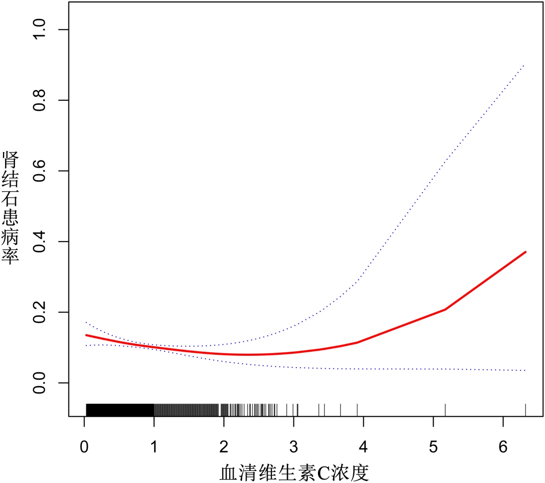 图2. 血清维生素C浓度与肾结石患病率的U型曲线